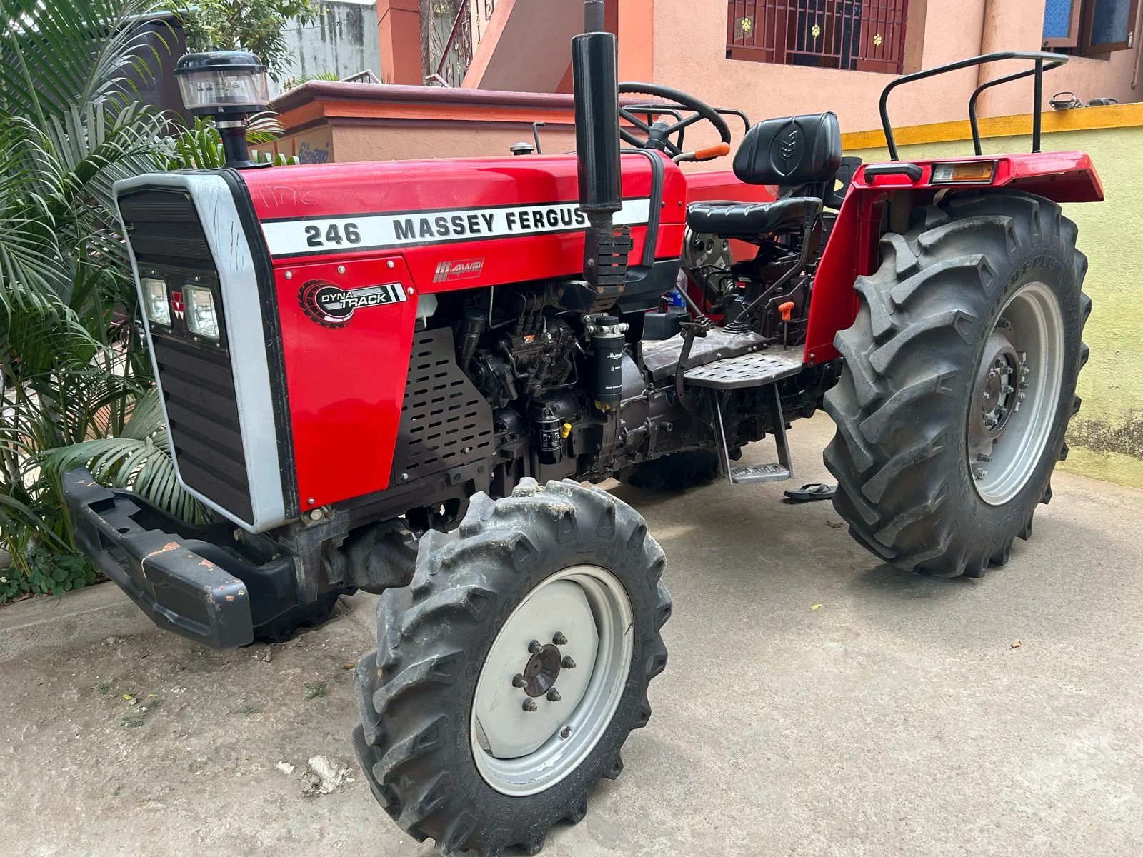 Meet our Massey Ferguson MF 246 DI 2WD that’s perfect for all your farming needs! It has a powerful 46 hp engine and a smooth-shifting transmission with 12 forward and 12 reverse speeds. The dual-clutch makes operating easy, and the side shift gear controls are simple.